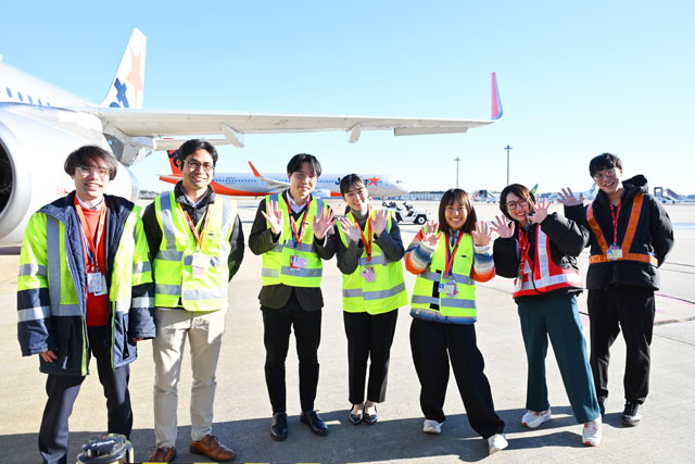 成田空港で高雄行き初便GK17便の乗客を見送るジェットスター・ジャパンのスタッフ=25年12月18日 PHOTO: Tadayuki YOSHIKAWA/Aviation Wire