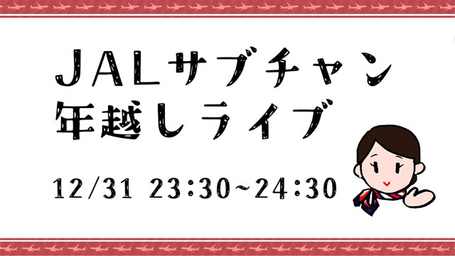 日本航空(JAL/JL、9201)は、YouTubeチャンネル「JAL、サブチャンネルはじめました。」の年越しライブ配信を12月31日夜に行う。