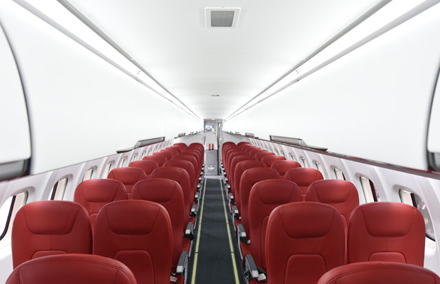 2席−2席の4席配列となる天草エアラインのATR42「みぞか号」の機内=15年9月29日 PHOTO: Tadayuki YOSHIKAWA/Aviation Wire