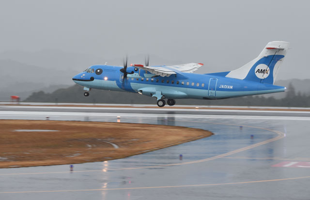 天草空港に着陸する天草エアラインの2代目みぞか号ATR42-600=16年1月7日 PHOTO: Tadayuki YOSHIKAWA/Aviation Wire