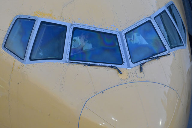 羽田でC-3POジェットのコックピットから手を振るANAのパイロット=26年1月9日 PHOTO: Tadayuki YOSHIKAWA/Aviation Wire