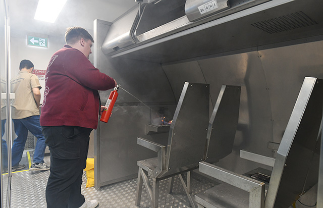 大韓航空のファイヤートレーナーで発生させた疑似火災=25年11月25日 PHOTO: Yusuke KOHASE/Aviation Wire