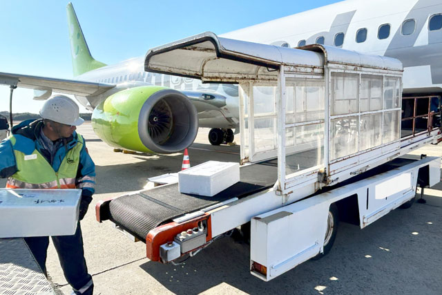 長崎空港でソラシドエアの羽田行きに搭載される長崎県産品(同社提供)