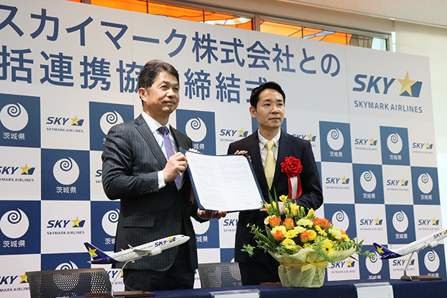 茨城県とスカイマーク(SKY/BC、9204)の両者は2月13日、包括連携協定を締結した。茨城空港の利用促進や地域経済の活性化など、地域課題への対応や県民サービスの向上、持続可能な地域社会の実現を目指す。