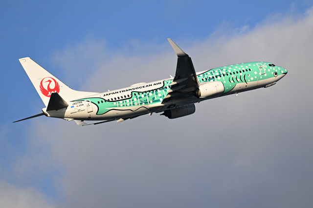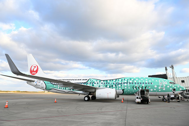 JTAのシンボル的存在になったジンベエジェットは、JTAと沖縄美ら島財団のタイアップで、2012年12月に最初の機体(737-400、JA8939)が就航。2014年1月には「さくらジンベエ」と名づけられた2号機(737-400、JA8992)が登場した。現在は737-400の退役に伴い、いずれも2代目の737-800へ代替わりしており、エメラルドグリーンの結ジンベエは3号機となった。