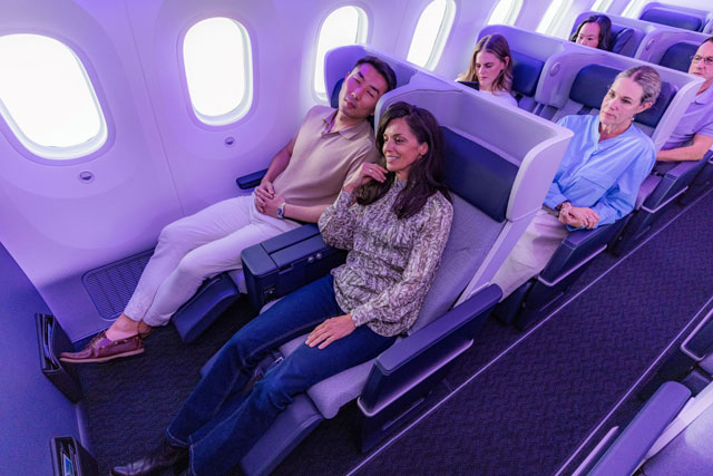 ニュージーランド航空は、2022年6月に新内装のコンセプトを発表。2025年5月からオークランド-ブリスベン線で新仕様機の運航を始めた。787-9は14機すべてを新仕様に改修する計画で、今年の年末までに改修を終える見通し。