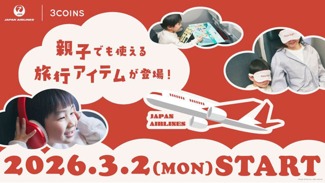 雑貨店「3COINS(スリーコインズ)」を展開するパルと、JALグループの商社JALUX(ジャルックス)は2月19日、日本航空(JAL/JL、9201)とコラボレーションした親子向け旅行アイテムを3月2日に発売すると発表した。