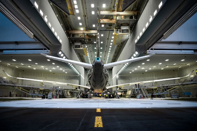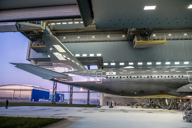 トゥールーズで塗装が完了したスターラックス航空のA350-1000「AIRSORAYAMA シルバー」(同社提供)