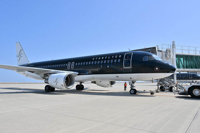 北九州空港で出発を待つスターフライヤーの羽田行き7G82便=26年3月16日 PHOTO: Tadayuki YOSHIKAWA/Aviation Wire