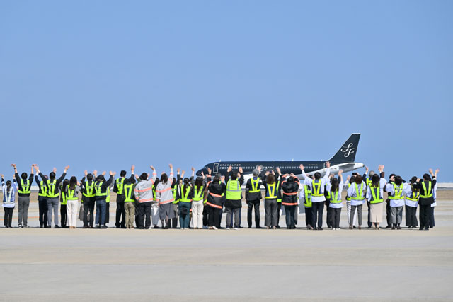 16日は北九州発羽田行き7G82便の乗客に、町田社長らが記念品を手渡した。2022年に就任した町田社長は「創業者が今までにない航空会社を作ろうと、スターフライヤーを立ち上げた。いま振り返るとかなり無謀な挑戦だったと思うが、無謀な挑戦が20年続いたことは素晴らしく、お客さまや地元のみなさまのご支援と応援があったからこそと痛感している」と挨拶した。