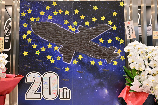 北九州空港のスターフライヤー本社に飾られた就航20周年のメッセージボード=26年3月16日 PHOTO: Tadayuki YOSHIKAWA/Aviation Wire
