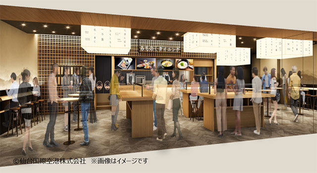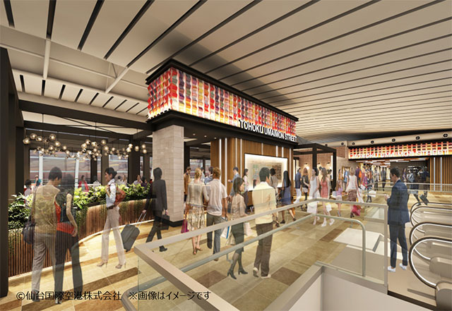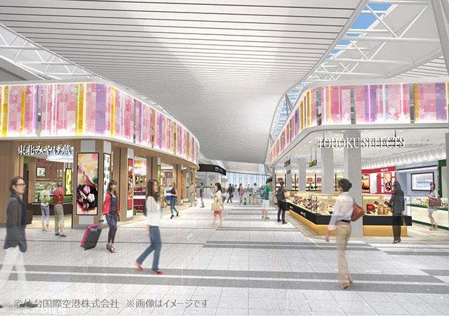 仙台空港リニューアル後の2階国際線保安検査場通過後の商業エリア(イメージ、仙台国際空港会社提供)