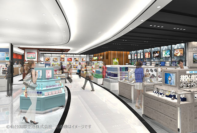 仙台空港リニューアル後の2階免税店(イメージ、仙台国際空港会社提供)