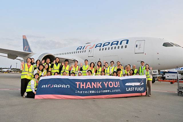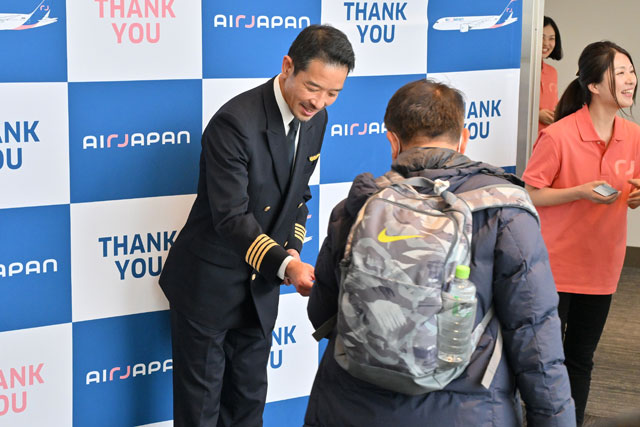 NQ1便の出発前には、搭乗口前に記念撮影コーナーなどが設けられ、乗客には搭乗証明書などの記念品が手渡された。社員を代表し、エアージャパン運航部の道廣直幹部長が「AirJapanのプロジェクトには、初期の段階から参画させていただいた。培った知見をANAブランドの今後の発展へ大きな財産として引き継ぎ、形は変えてもみなさまの旅のお手伝いを今後もサポートし続ける」とあいさつした。