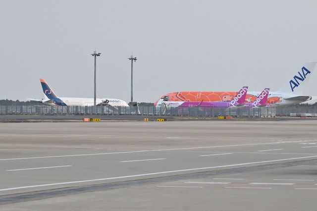 成田空港に並ぶAirJapanの787-8=26年3月28日 PHOTO: Tadayuki YOSHIKAWA/Aviation Wire