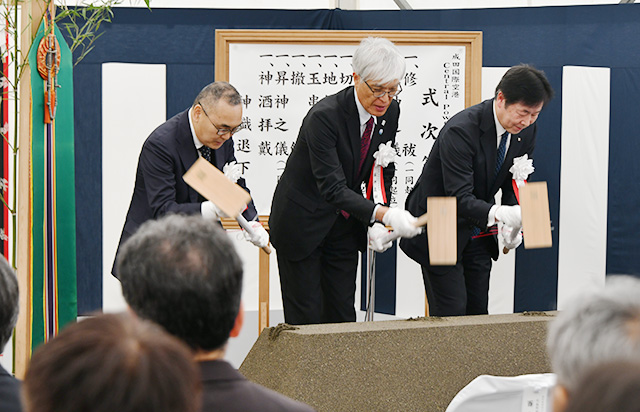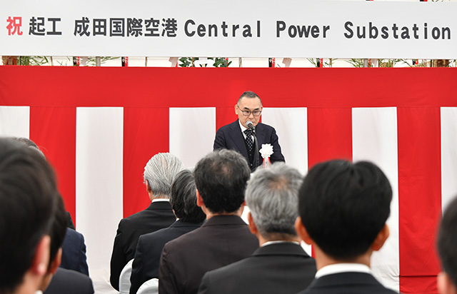 CPSの予定地で開かれた起工式で、GEFの西本忠義社長は「CPSは成田空港の発展を支える重要なプロジェクト」と述べ、気を引き締めた。