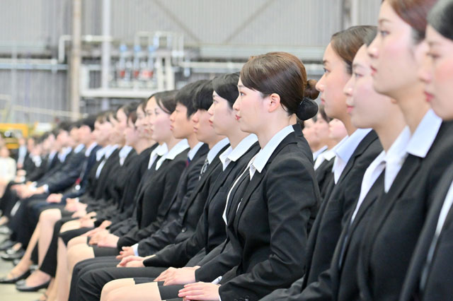 入社式に列席するJALグループの新入社員=26年4月1日 PHOTO: Tadayuki YOSHIKAWA/Aviation Wire