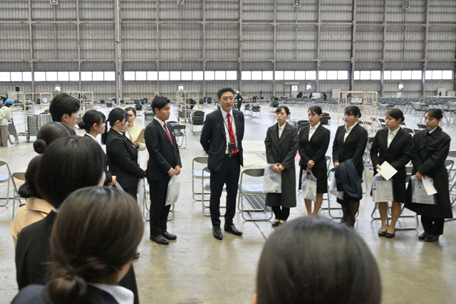 ・JAL赤坂社長「新しい価値生み出して」格納庫で下期入社式(22年10月4日)