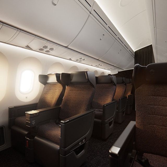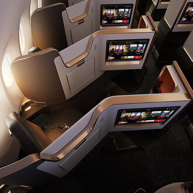 787-10の座席数は3クラス332席で、ビジネス42席、プレミアムエコノミー28席、エコノミー262席。ビジネスのうちスイート「シグネチャー・プラス・スイート」は前方に4席設定し、専用のゲスト用座席と幅2メートル(6フィート5インチ)のベッドを備える。ビジネスクラス「シグネチャー・クラス」は1-2-1配列の38席で、スイートとビジネスともに中央部の2席の間にはスライド式のプライバシーパネルを設ける。