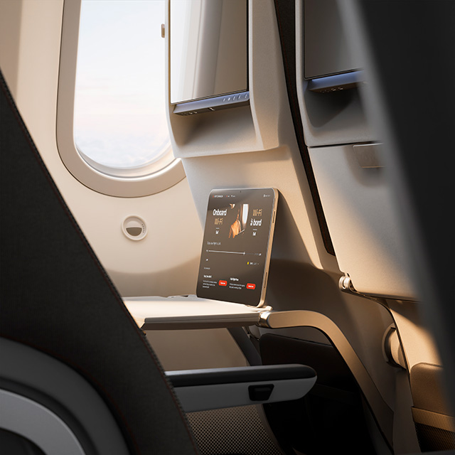モニターはBluetoothオーディオ対応の有機ELで、エコノミーは13インチ、プレミアムエコノミーは16インチ、ビジネスは19インチ、スイートは27インチ。充電用USB端子はType-Cで、AC電源も完備する。