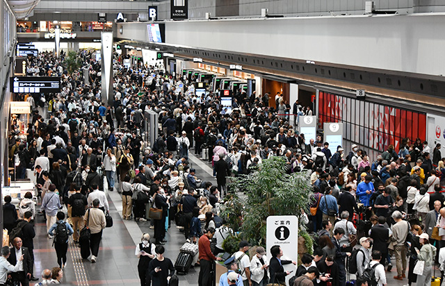 利用客でごった返す羽田空港第1ターミナル2階の出発ロビー=26年4月21日 PHOTO: Yusuke KOHASE/Aviation Wire