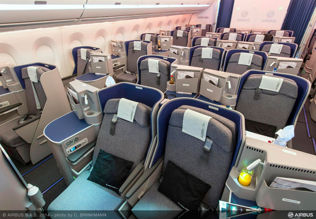 公開されたA350 XWB MSN2の機内(エアバス提供)