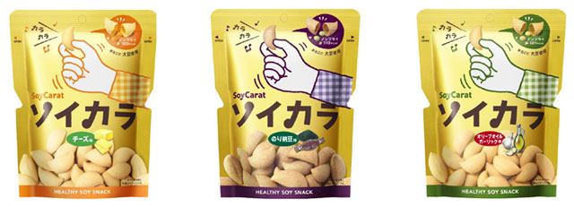 用意するのは大塚製薬の「ソイカラ」で、味はチーズ、のり納豆、オリーブオイルガーリックの3種類。
