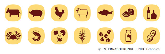 表示するピクトグラムは牛、豚、鶏、羊、魚、貝、アルコール、かに、えび、卵、小麦、そば、乳、落花生の14種類。神戸市の特定非営利活動法人、インターナショクナルと、横浜市のデザイン会社、エヌディーシー・グラフィックスが共同制作した。