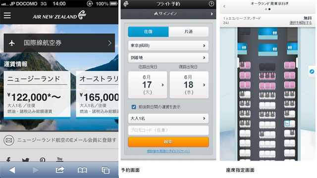 ニュージーランド航空(スマートフォン用サイト)