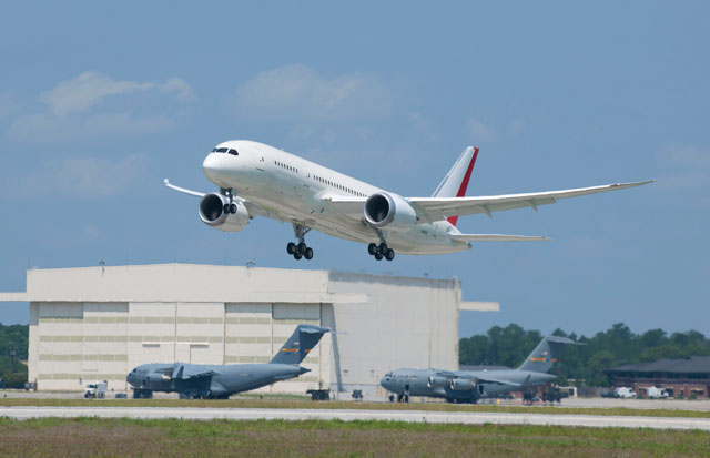 初飛行に成功したサウスカロライナ工場初のボーイング787型機(同社提供)