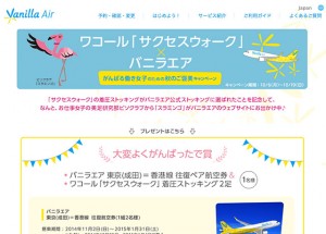「スラミンゴ」が搭乗するキャンペーン特設サイト(バニラエアのウェブサイトから)