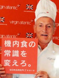 Facebook上で公募したレシピを機内食に採用する「空の上のレシピ賞」をPRするヴァージン アトランティック航空のスティーブ・リッジウェイ社長(同社提供)