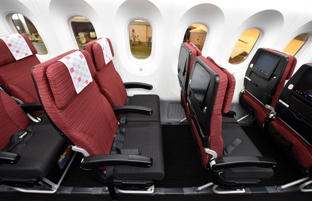 窓側は2席配列になったスカイスイート787のエコノミークラス=11月29日 PHOTO: Tadayuki YOSHIKAWA/Aviation Wire