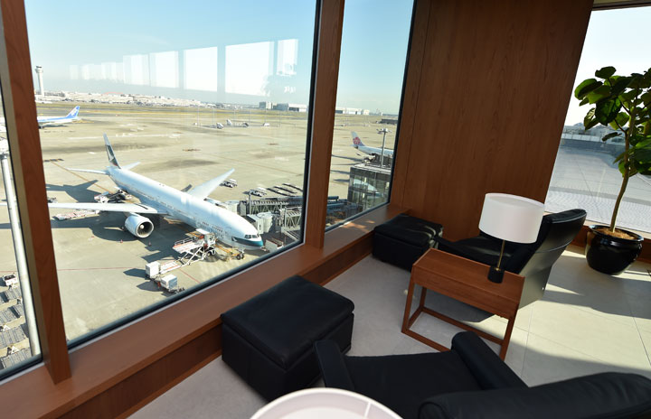 6階のラウンジからはキャセイパシフィック航空の機体も見える=14年12月8日 PHOTO: Tadayuki YOSHIKAWA/Aviation Wire