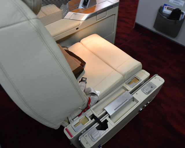 車いす利用時に倒せるファーストクラスのアームレスト=12月7日 PHOTO: Tadayuki YOSHIKAWA/Aviation Wire
