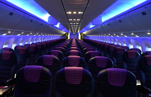 夜間モードのLED照明を施した普通席=12月7日 PHOTO: Tadayuki YOSHIKAWA/Aviation Wire