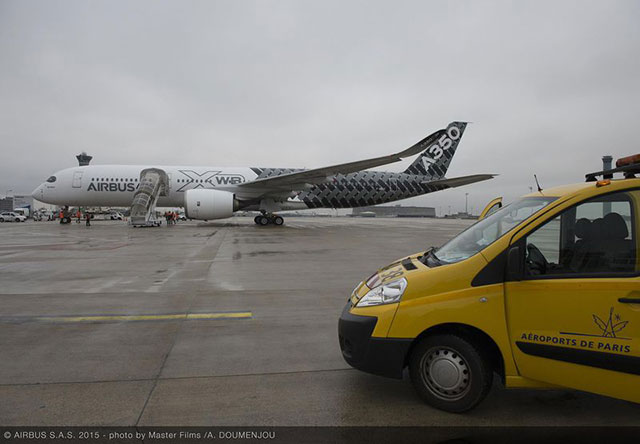 シャルル・ド・ゴール国際空港に初飛来したA350 XWB=15年2月 PHOTO: A. Doumenjou, Master Films/Airbus