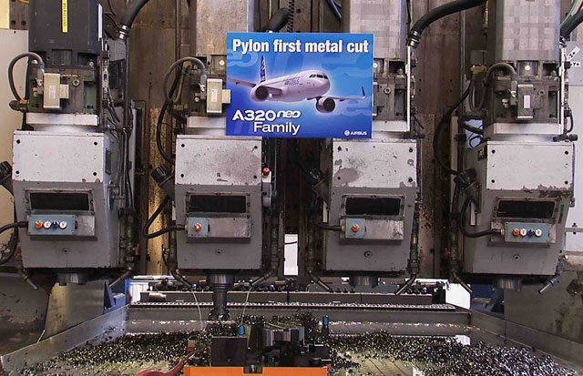 エアバスは現地時間7月8日、A320型機のエンジン換装型「A320neo」の製造を開始したと発表した。仏トゥールーズのサン-エロワ工場で最初のメタルカットが行われ、エンジンパイロンの加工を開始した。