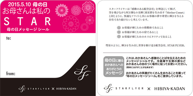 スターフライヤー、母の日前に機内で感謝シール(15年5月9日)