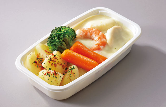 また、昨年の冬メニューから登場した、売上の一部を開発途上国の農業支援に充てる「カロリーオフセットプログラム」の対象商品も登場。かき揚げと茶そばの「夏のお弁当かきあげと茶そば」(850円)と、トラウトサーモン、ホタテ、イカ、エビの4種類のシーフードにバジルをのせたクリームソースを合わせた「シーフードのバジルクリームソース」(800円)にリニューアルした。