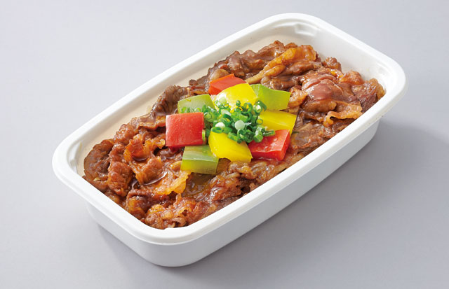 新メニューの「炭火焼肉たむら監修ヘルシー焼肉丼」(800円)は、関西の焼肉店「炭火焼肉たむら」が監修した肉に甘辛いタレを絡め、パプリカを添えて見た目も楽しめるようにした。