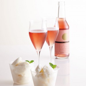 たこシャンは昨年も夏メニューで提供。創業100年を越える老舗、大阪のカタシモワイナリーがたこ焼きに合うスパークリングワインとして作ったもの。昨年は白だったが、今回はピーチをイメージしてロゼにした。1500本限定で980円。
