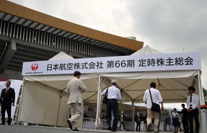 ・JAL、株主総会で株式分割可決 議事妨害で退場者も(14年6月18日)