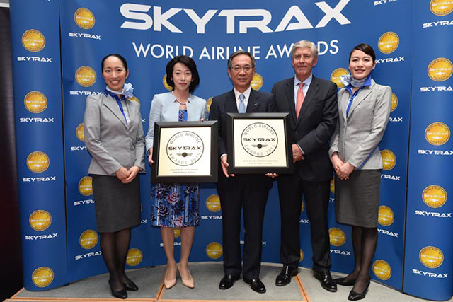 ベスト・エアライン・スタッフ・イン・アジアの受賞は2011年に続き2度目。空港スタッフと客室乗務員が連携しサービス向上に努めている点や、空港・機内でのサービスレベルがアジアで最も優れている点が評価された。