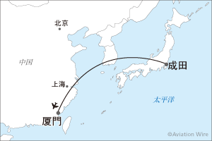 成田からの厦門便は、全日本空輸(ANA/NH)が1日1往復運航。CXAの日本路線は、厦門-関西線を1日1往復、福州-関西線を週4往復運航している。