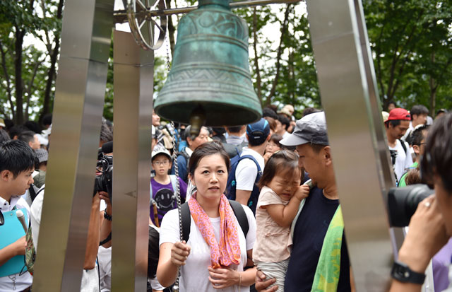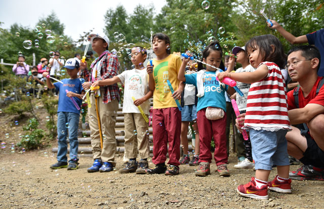 午前10時30分すぎからは、山頂付近にある「昇魂之碑」と「鎮魂の鐘」の前で、遺族会「8・12連絡会」が慰霊集会を開き、子供たちがシャボン玉を飛ばして30年目の供養を行った。