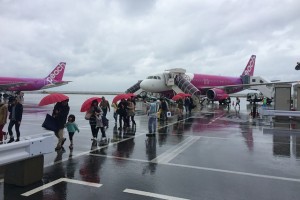 1日目第2便のピーチ搭乗時には、台風と空港閉鎖の影響で遅延が起きました。遅延発生時の乗客の反応から、LCCというビジネスモデルは日本でも定着すると感じました。