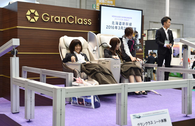 ツーリズムEXPOに設けられた北海道新幹線グランクラスの体験コーナー=9月25日 PHOTO: Tadayuki YOSHIKAWA/Aviation Wire