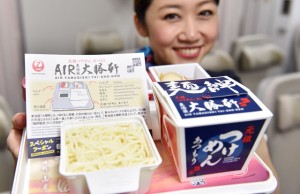 エア大勝軒は、12月から国際線プレミアムエコノミーとエコノミークラスで提供する機内食。つけ麺の元祖と言われる東京・東池袋大勝軒と開発したものです。機内食用にカスタマイズしてはいるものの、材料は店舗と同じものを使用しています。