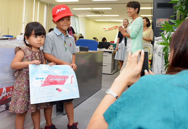 夏休みもあと少しとなった8月27日、千葉県成田市にあるエアアジア・ジャパン(WAJ)のオフィスに、かわいいお客さんがやってきた。イベントで就航初便の往復航空券を当てた川野恵豊(けいと)くん(6歳・東京都在住)が同社を訪れ、航空券のお礼としてエアバスA320型機を描いた絵を岩片和行社長にプレゼントした。